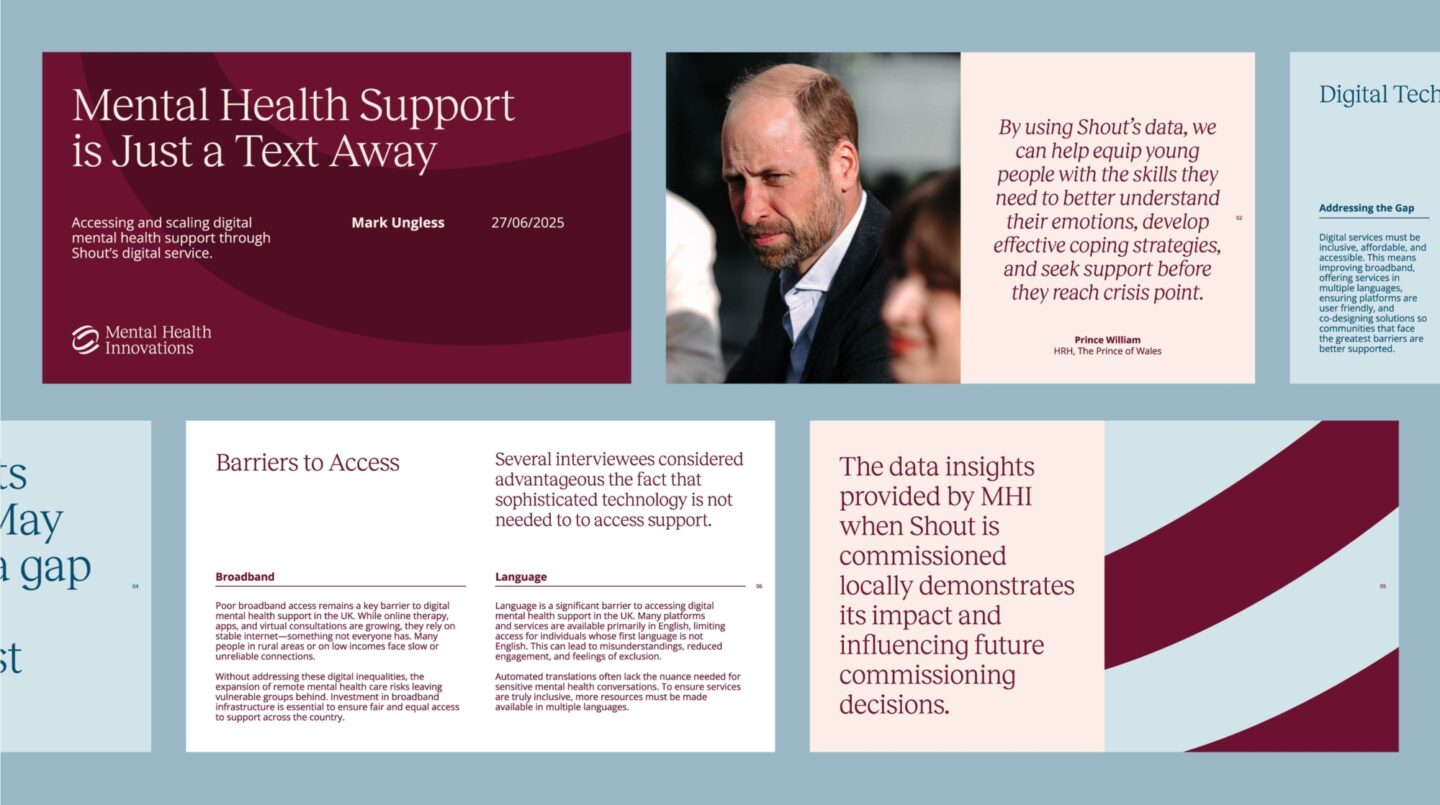 The Mental Health Innovations strategy was shaped around its core areas of expertise: clinical insight, digital innovation, and its standing as a data powerhouse—built on decades of research and frontline service. People have been, and always will be, at the very heart of MHI’s purpose.